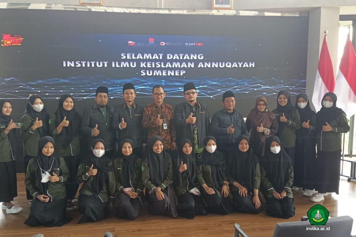 Surabaya - INSTIKA - prodi Perbankan Syariah (PS) putra dan putri semester VI Fakultas Ekonomi dan Bisnis Islam (FEBI) Institut Ilmu Keislaman Annuqayah (INSTIKA) Guluk-Guluk Sumenep melaksanakan Company Visit di Bursa Efek Indonesia Surabaya dan PT Phintraco Sekuritas Surabaya, Selasa (16/05/2023).